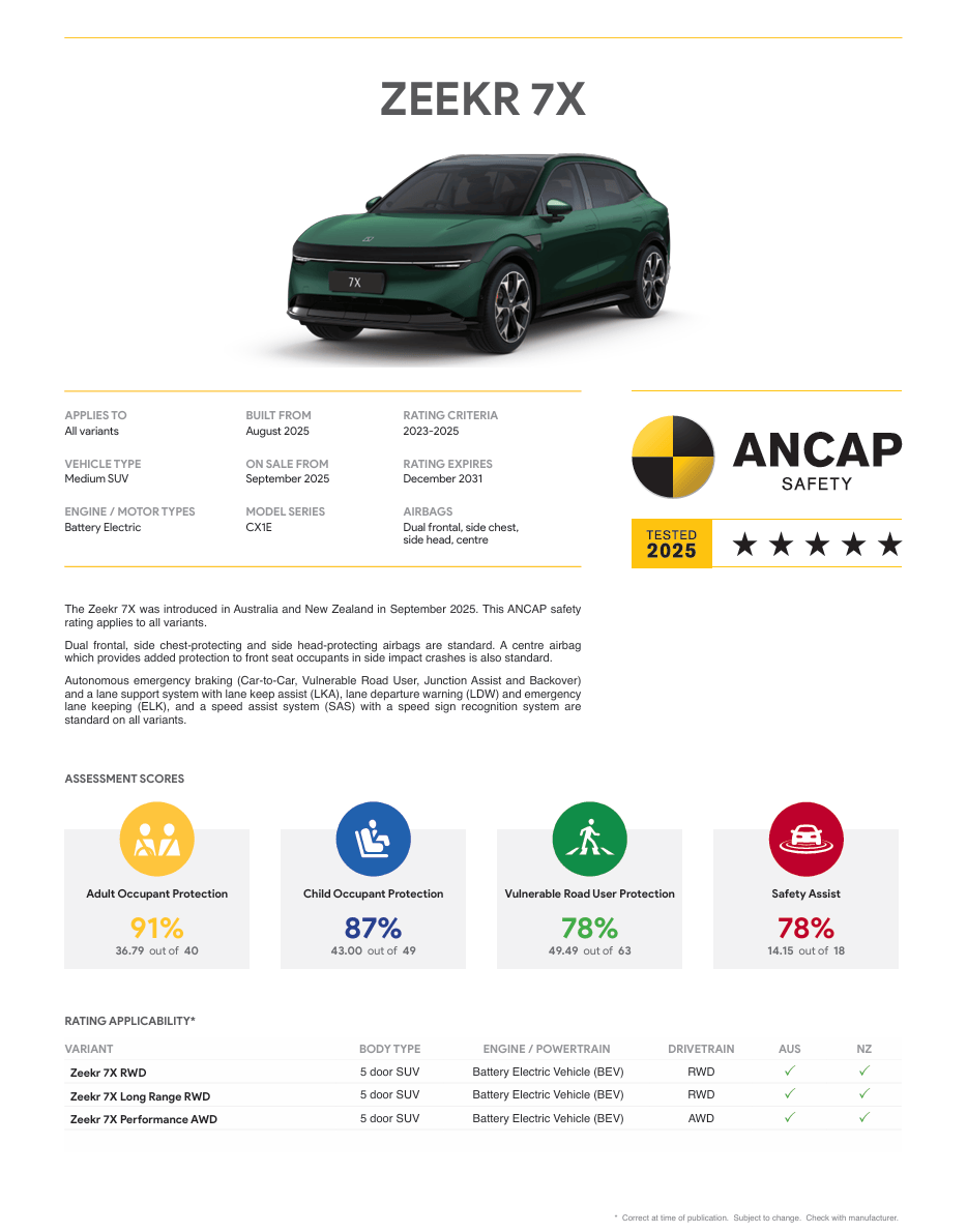 近日✿ღ★,极氪 7X 正式拿下 2025 年澳大利亚新车安全评鉴协会 ANCAP 五星安全评级✿ღ★,成为全球为数不多集齐 C-NCAP✿ღ★、Euro NCAP✿ღ★、ANCAP 三大权威机构五星安全认证的家庭豪华纯电 SUV都会网凯发K8国际娱乐官网✿ღ★。此次认证不仅是对极氪 7X 硬核安全实力的高度认可✿ღ★,更标志着其安全标准全面接轨全球最高水平✿ღ★,为全球家庭用户的出行安全筑牢防线✿ღ★。